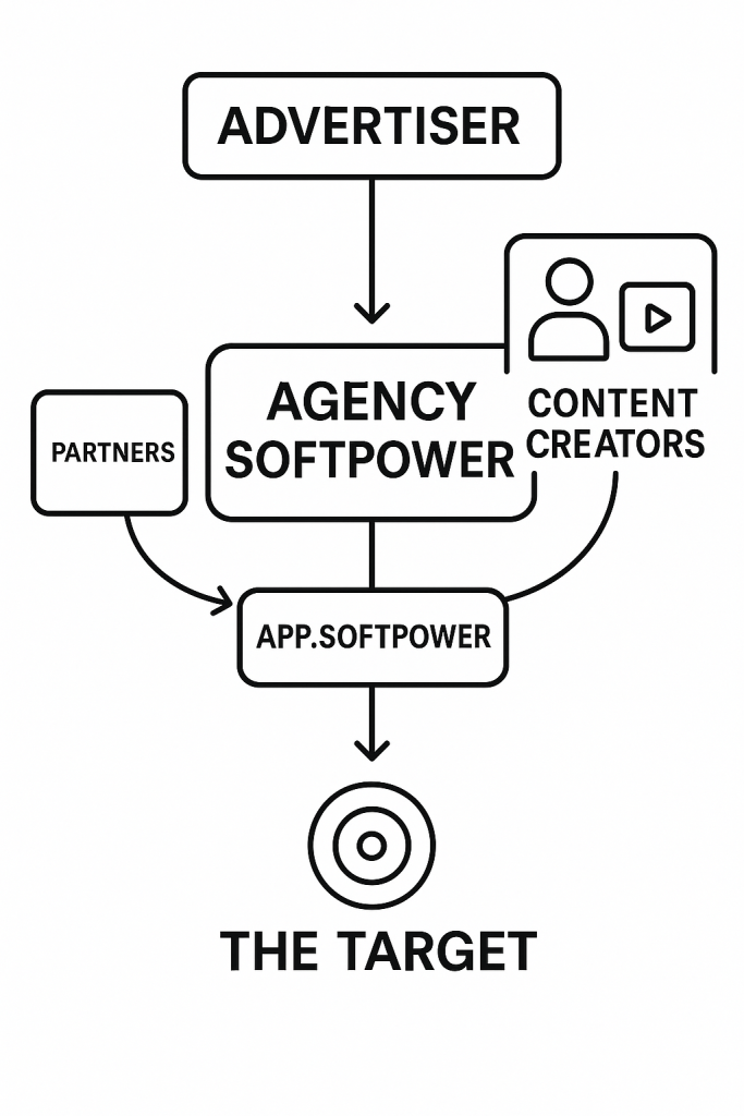 Grâce à notre réseau de créateurs thématisés (voir nos créateurs) et de partenaires médias (voir nos partenaires), nous orchestrons une diffusion qui maximise l’effet domino, en choisissant les points d’entrée les plus puissants du réseau.